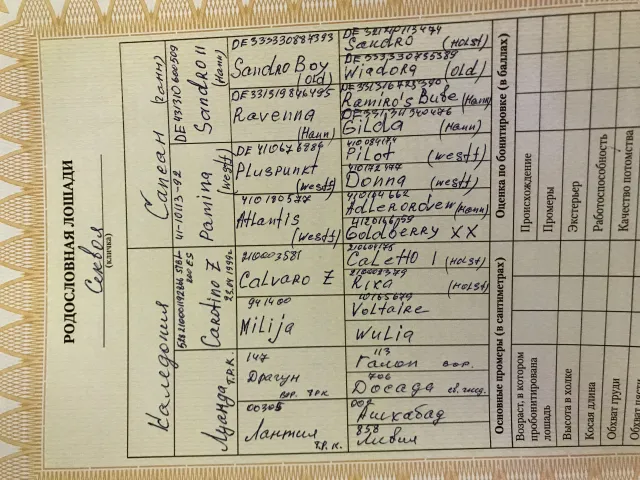 Хорошая родословная линий : Carotino Z ; Pilot , Sandro boy , Atlantis , Pluspunkt