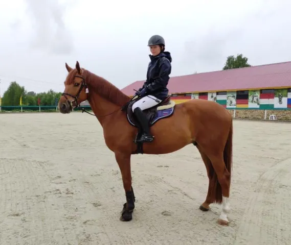 НА ПРОДАЖУ 21/06✨1414: Мерин 2015 г.р. Рост 165 см. Полукровной породы, по факту тракен. Мать: Габриэлла от Балагура ХХ(Тракененской породы , из КФХ Простор). Отец: Прио Гранд (Тракененской породы, из КФХ Простор ). Конкур, есть перспектива и в троеборье. Маршруты до 115, связки до 130, есть задаток прыгать выше. Под уверенного спортсмена (не под ребёнка). Знает кроссовые барьеры, не боится воды. Правильные аллюры. Конь с характером бойца, честный и адекватный. Чипирован, проблем со здоровьем не имеется.Все прививки делались своевременно, отметки о них имеются. Синий паспорт ВНИИК, ветеринарная справка, договор купли-продажи. Диапазон до 1,5 млн рублей. Находится в Ярославле, поможем с поиском доставки в любые регионы. ***Если Вы находитесь в поисках лошади, готова предложить помощь в подборе подходящих вариантов под Ваш бюджет и критерии***