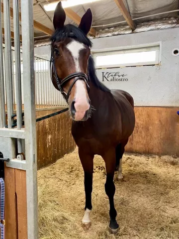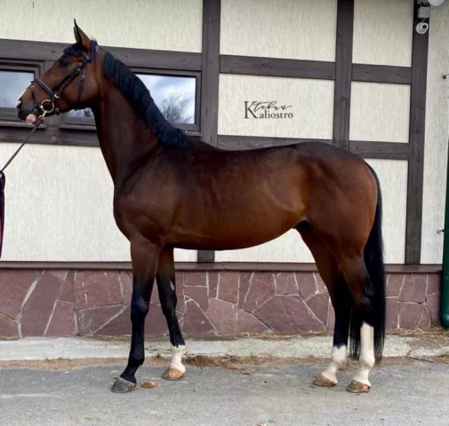 Сейчас находится в грамотном тренинге, вольты, переходы, подъёмы в галоп с обеих ног, уступки на шагу.