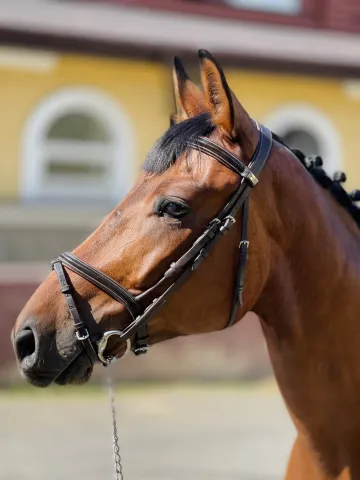 Гнедой масти.165 см в холке.2015 года рождения.Уровень детских езд, готовится на юношеские езды.Имеется менка.Адекватный, можно доверить ребёнку.Перспективен в конкур, выездку, троеборье.Без проблем по здоровью.Находится в Москве.