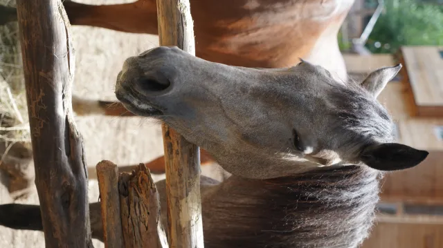По домашнему ее называют "Собака", потому что ведет себя буквально как собака . Очень человекоориентированная лошадь, планировали брать ее в иппотерапию. Хорошо взаимодействует с детьми, постоянно всем интересуется, любит проверять все носом.
