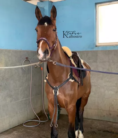 Кобыла.Полукровной Спортивной породы.Гнедой масти.171 см в холке.2016 года рождения.Устойчивая психика, ничего не боится.Честная, не встаёт и не обносит, выручит с любого положения.Стартовый опыт до 110 см под ребёнком.Имеет удобные движения.Подойдёт под любого всадника.Имеется паспорт ВНИИК.Находится в работе под руководством КМС.Здорова, имеется чип.Находится в Калининграде.