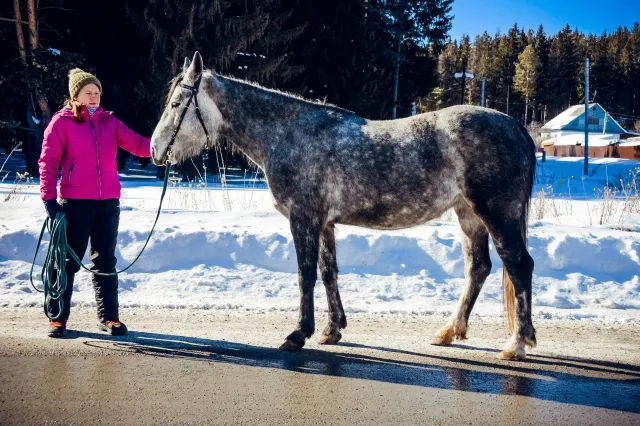 Кобыла орлово-карачаевской помеси, хорошее телосложение, добронравная. Есть перспектива в детский спорт (выездка, конкур). Заезжена, расчистка на руках, грузится идеально.