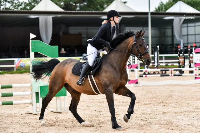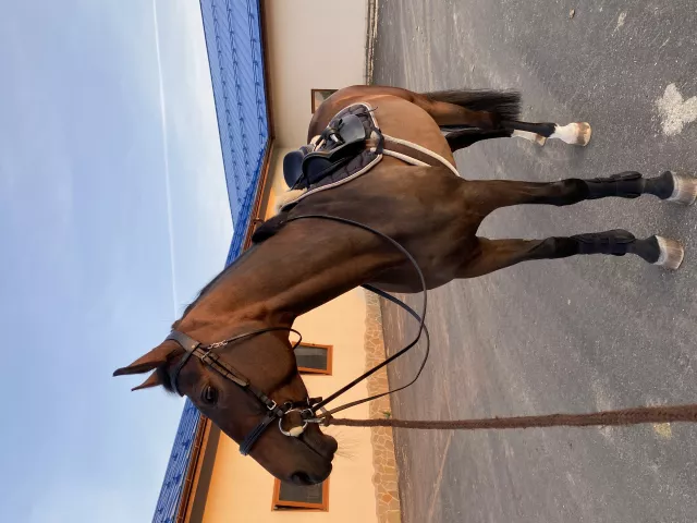 3 года был в работе у любителя под руководством опытного тренера. Сейчас работается в любительский конкур + небольшие элементы выездки.
