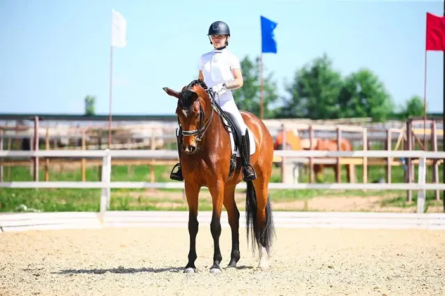 Латвийская кобыла 2012 г.р.,рост 177 см.Уровень юношеских езд. Готовится к МП. Отличные ровные аллюры! Хороший шаг и галоп. Спокойная спортивная лошадь , адекватно ведёт себя на старте , приятная в работе, уедет ребенок. Есть свежие рентгены. Цена и видео по запросу. Контакты : +7(910) 4135886 Ирина (если не отвечаю на звонки,просьба писать на Ватсап
