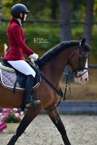 Работает в руках со слабым всадником и детьми, прыгает до 80 см, ни на что не смотрит, выручает из любых положений.
