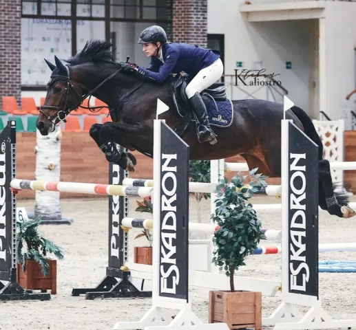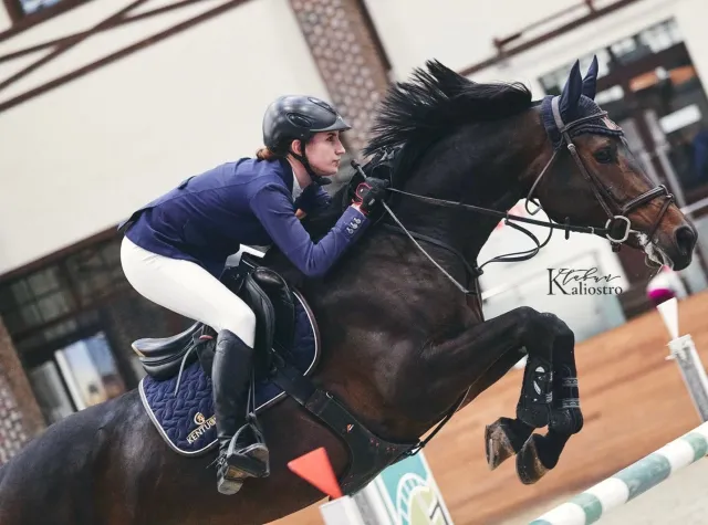 Стабильно стартует до 120 см, дома до 140 см, знает все элементы Юношеских езд.