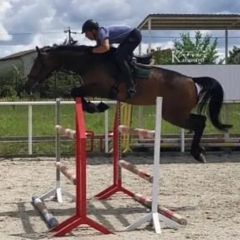Кобыла.Полукровной породы.Гнедой масти.168 см в холке. 2015 года рождения.Имеется стартовый опыт до 110 см, дома маршруты до 120 см, всегда в призах.Находится в Курске.
