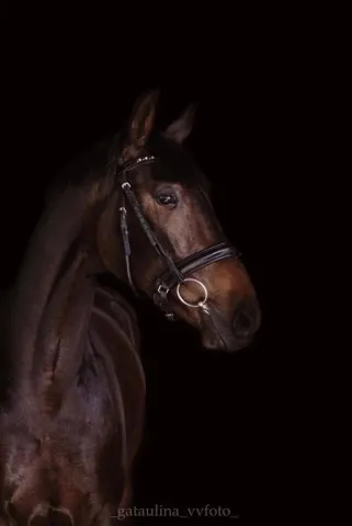 Заезжен под седло в начале июля. Удобный по спине, мягкий на рот, чувствительный на ногу, активный, легкоуправляемый, хорошо идет на контакт с всадником. Ориентирован на человека, ласковый, общительный парень.