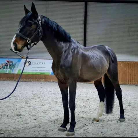 Жеребец.Голштинской породы.167 см в холке.2015 года рождения.Отец - Кореолан 29; Мать - Оказия Кавказа 5.В выездку.Подойдет под любого всадника.Находится в Калужской области.