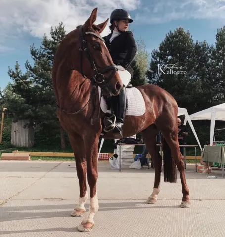 Мерин.⠀Тракено - Буденновской породы.⠀Караковой масти.⠀169 - 172 см в холке.⠀2008 года рождения.⠀Очень спокойный, ласковый, любит детей.⠀Выезжен до МП.⠀Прыгал до 130 см.⠀Имеется паспорт ФКСР.⠀Находится в Москве.