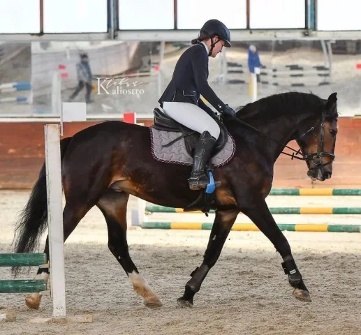Кобыла.Полукровной породы.Темно - гнедой масти.161 см в холке.2016 года рождения.Очень спокойная, активная.Подойдет под любого всадника.Маршруты до 110 см.Поздней заездки.Очень честная, сильная, любит прыгать, аккуратная.Выступает в троеборье, едет ЛК 100.Здорова.Находится в Москве.