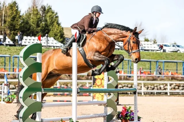 Очень удобный, ровный на всех аллюрах. Выезжен на пальчиках. Имеет техничный и сильный прыжок. На соревнованиях ведет себя уверенно, никаких психов и пакостей.
