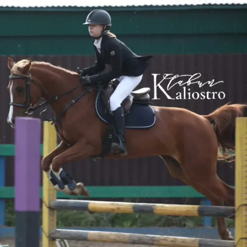 Кобыла.Арабской помеси.Рыжей масти.152 см в холке.2015 года рождения.Хороший характер, покладистый, адекватный.Выезжена, знает переходы, боковые, менку ноги в воздухе. Напрыгана до 100 см, сейчас стартует под детьми до 65 см. Ходит спокойно в лес, хорошо работает на корде.Подойдет под ребёнка любого уровня от начального до выступающего спортсмена, прекрасный компаньон.Имеется племенное свидетельство, договор купли-продажи.Возможна продажа с седлом и уздечкой.Без проблем по здоровью.Находится в Москве.