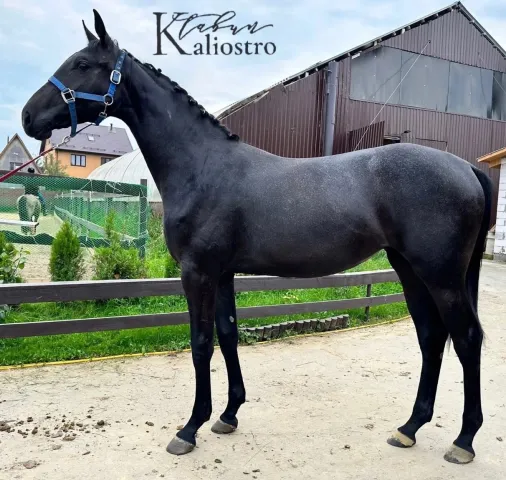 Кобыла.Полукровной спортивной породы.Вороной в седину масти.160 см в холке.2022 года рождения. В родословной имеются известные всем: Corall Caledo Cita - D Corrado-1 Calando-1 Nabad de Rêve.Невероятно красивая, на приятных аллюрах. Находится в Москве.