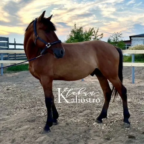Жеребец.Саврасо - гнедой масти.Белорусской упряжной породы.145 см в холке, растет.2019 года рождения.Чуткий, внимательный к человеку, дружелюбный.Обладает мягкими, удобными аллюрами и техничным прыжком.Заезжен, не форсируется.Подойдет под невысокого всадника или ребёнка.
