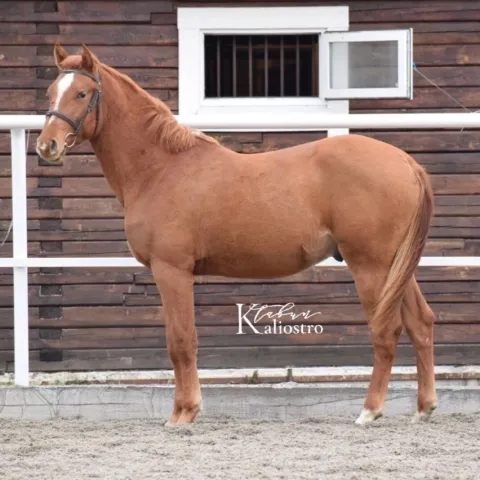 Жеребец.Ганноверской породы. 164 см в холке.2021 года рождения.Импортных кровей: Quidam de Revel; Landgraf I; Ladykiller.Оповожен, стоит на развязках, гуляет на выпасе.Имеется розовый паспорт ВНИИК.Находится в Московской области.