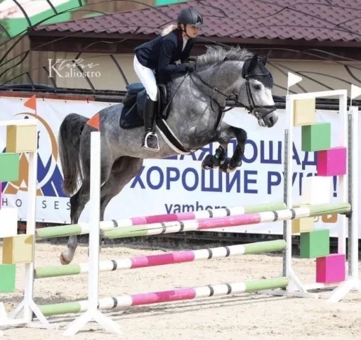 Мерин.Голштинской породы.162 см в холке.2018 года рождения.Прыгает до 100 см, связки до 115 см, одиночные выше.Имеет стартовый опыт.Подойдёт под уверенного всадника.Здоров.Находится в Московской области.