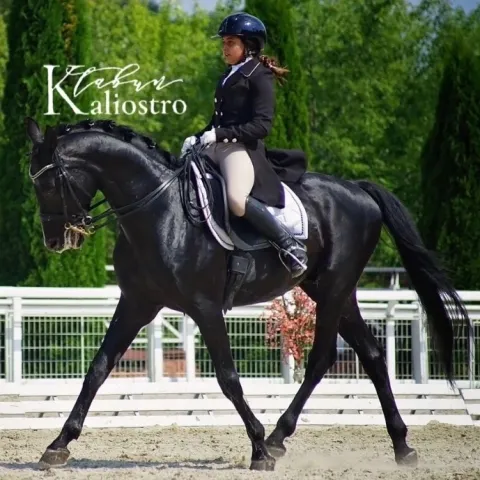 Жеребец.Ганноверской породы.Вороной масти.165 см в холке. 2012 года рождения. Отец - выступал на международных соревнованиях; Мать - Чемпионка СССР.Импульсивный.Очень удобный под седлом.Работается в выездку - ППЮ, КПЮ, элементы МП.Крайний старт КПЮ - 69%.Стартовал детские езды.Маршруты до 100 см, одиночные 130 см, шпринт 140 см.Крыл, дает красивых жеребят.Подойдет под всадника с мягкой рукой.Привозит разряды.Находится в Туле.
