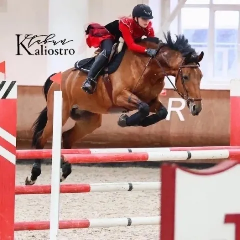 Кобыла. Ольденбургской породы. 170 см в холке.2009 года рождения.Отец - Флиппер Дель.Маршруты до 120 см на стартах.Подойдет под сильного любителя.Находится в Московской области.