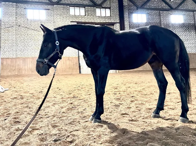 Очень адекватный, на кобыл не реагирует, спокойный под седлом.