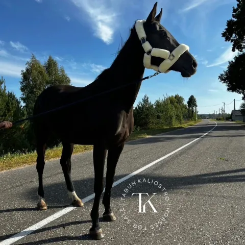 Кобыла.Ганноверской породы.Вороной масти.165 см в холке.2017 года рождения.Очень красивая, прекрасно ведет себя на фотосессиях.Не конфликтует с другими лошадьми.Обладает природным широким шагом, правильной рысью и правильным галопом.Работается в выездку, готовится к юношеским ездам.Очень мягкая.Отлично ведет себя под детьми и в полях, ориентирована к человеку.Подойдет под любителя или ребенка.Здорова.Находится в Беларуси.