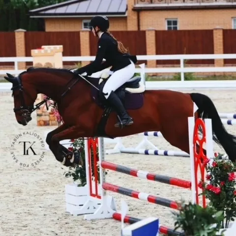 Мерин.Гнедой масти.175 см в холке.2014 года рождения.Cavalo Z x Scarlett.Рожден в Германии.Невероятно любопытный, умный и контактный.Стартовый опыт до 120 см, дома выше.Ничего не боится, прыгает все.Перспективен в большой спорт.Подойдет под амбициозного, сильного всадника.Все манипуляции без проблем.Имеется паспорт ФКСР и FEl.Здоров, имеются рентгены.Находится в Москве.