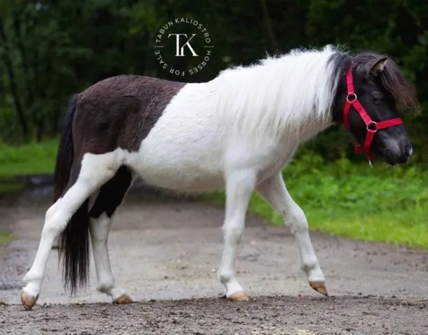 Кобыла.Шетландской породы.Вороно - пегой масти.Перспектива роста до 105 см в холке.2022 года рождения.Отец - Пьер, мать - Маргаритка.Универсальная.Имеется паспорт ВНИИК.Находится в Ленинградской области.