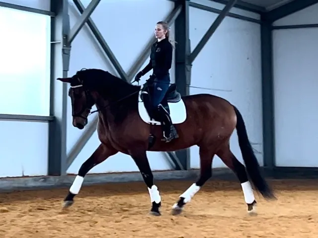 Работает в выездковом направлении под руководством МС. Знает боковые, в работе менка. С удовольствием всему учиться и запоминает новое.Мягкий на рот. Подойдет любому всаднику.Ходит в поля, леса, работает на всех площадках.Знает некоторые трюки.Ориентирован на человека, ласковый, любит занятия в руках.