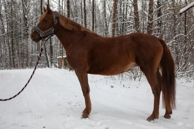 НА ПРОДАЖУ №4779:Кобыла 2016 г.р.Рост 150 см.Спортивная помесь. Детская, удобная под седлом, безопасная, подойдет ребенку и начинающим спортсменам.Очень доброжелательная к человеку, добронравная, хороший темперамент и покладистый характер.500 тысяч рублей.Находится в Московской области, поможем с поиском доставки в любые регионы.