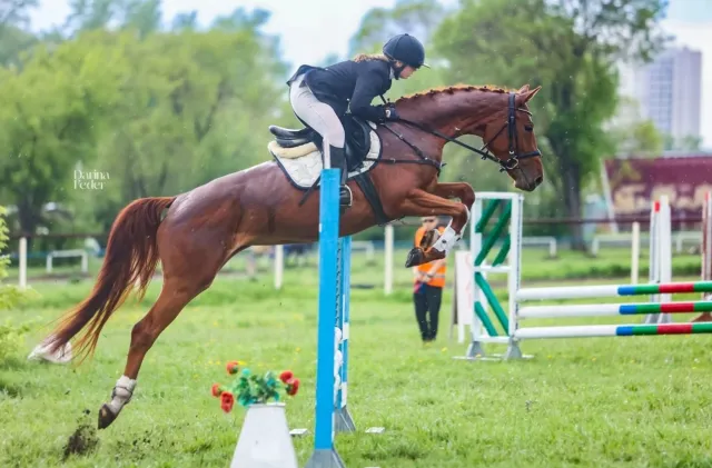 НА ПРОДАЖУ 4946:Кобыла 2020 г.р.Рост 172 см.Тракененской породы, хорошее происхождение. Дедушка по линии отца Оксфорд выступал в конкуре 150-160 см под седлом С. Парьева и М. Сафронова. Отец Оксфорда Храп выступал в конкуре S класса на Украине. Также в родословной чемпионы СССР по троеборью Поплин и его отец Пакет.По материнской линии конкуристы класса S через тракененского жеребца Зорро.Молодая, перспективная кобыла в любую дисциплину, работает в троеборном направлении. Стартовала по молодым ДК80, конкур прыгает связки до 100 см. Не форсируется.На широких, приятных движениях, хороший шаг, отличный импульс.Победитель региональных соревнований для лошадей 3х лет по качеству аллюров, призер ( 2 место ) всероссийского чемпионата среди жеребят тракененской породы по двигательным качествам. Кобыла очень ласковая и отдатливая в работе. Находится в тренинге, клинически здорова, любые проверки за счёт интересующейся стороны.Документы: розовый паспорт ВНИИК, паспорт ФСКР, ветеринарное свидетельство, договор купли-продажи. Цена по запросу.Находится в Томске, поможем с поиском доставки в любой регион.