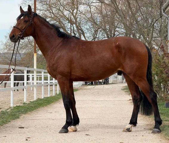 НА ПРОДАЖУ 5078:Жеребец 2022 г.р.Рост 166 см.Полукровный, правнук Cornet Obolensky. Перспективен в спорт, конкур/выездку, интересный, прыгает в шпринте, готовится к заездке, знает корду, очень сообразительный.Все манипуляции без проблем, ласковый и спокойный, уважает человека и быстро учится новому.Есть ветчек, вредных привычек и денниковых пороков нет.Племенное свидетельство, ветеринарный паспорт.Цена по запросу.Находится в Крыму, поможем с поиском доставки в любые регионы.