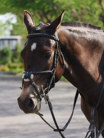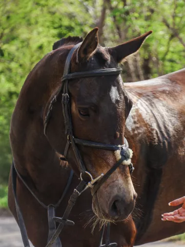 Кобыла находится в регулярном тренинге (ходит под седлом, работает на корде и в