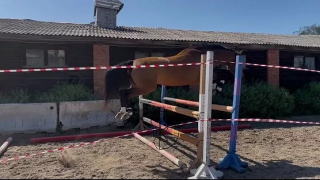 Заезжен. Возит всадника на 3 аллюрах, воспринимает спокойно. Бегает жерди на рыси. В шпринте напрыган до 100