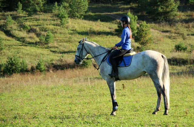 Знает несколько трюков: потрясающе делает "Трапецию", "Испанский шаг", на пол пути к поклону. Благодаря гимнастике, отлично гнется. На выездковых движениях, очень грациозная. Можно пробовать выездку и уже изучены: шаг, рысь, галоп, контргалоп, остановка, осаживание, плечо во внутрь, принимания на шагу, уступки шенкелю (на рыси в процессе). Мягкая на рот и чуткая на шенкель, работает от корпуса и голоса.