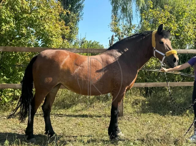 Звезда кинематографа. Милая плюшка белорусской упряжной породы. Универсальная рабочая лошадь, отлично подходит для работы в руках, верхом и в упряжи. Возит как сани, так и телегу. Знает трюки: трапеция, испанский шаг, улыбка. Отлично ходит в поля.
