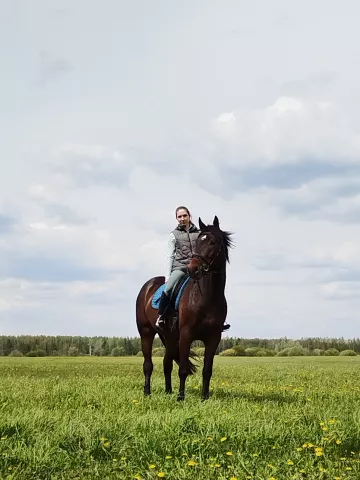 Латвийская упряжная162 в холке. еще растет.Очень адекватный. супер мягкий и удобный на аллюрах. хорошо выезжен.справляются дети. не страшно посадить даже "чайников". начали учить боковые( нужно доработать).что умеем: пируэты на шагу. плечи и уступки шаг, рысь. рысь-остановка-рысь. галоп в обе стороны как с рыси, так и с шага. простая перемена через рысь, шаг.учит детей прыгать небольшие препятствия.Не хулиганит. можно седлать хоть раз в неделю. Не конфликтный. Гуляет с жеребцом в электропастухе. без денниковых косяков.колется, пшикается, моется, расчищается и тд. все манипуляции на 5+из документов: дкп, вет паспорт, чип, меркурий.есть косметический дефект (не красивый шрам на ноге). получен в детстве до меня. ни разу не хромал.
