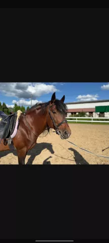 ⬛️Пол: жеребец⬛️Порода: помесь владимирского тяжеловоза⬛️Рост в/х: ~155⬛️Год рождения: 2016⬛️Наличие документов:учет Меркурии ,чип ⬛️Город местонахождения лошади: Калужская область ✅Адекватный. Железобетонная психика, не боится внешних раздражителей. Ходит в поля, леса,работает на манеже и плацу.Вездеход!Не таскает, не высаживает. Подойдет под любого всадника . Высокие всадники хорошо смотрятся на нем.Не жеребцует , мимо кобыл ходит даже не гугукает, спокойно работает с Пони и кобылами В быту беспроблемный. Добрая и надежная лошадь. Колется,расчищается,моется.✅Дает здоровых рослых жеребят. ✅Здоров