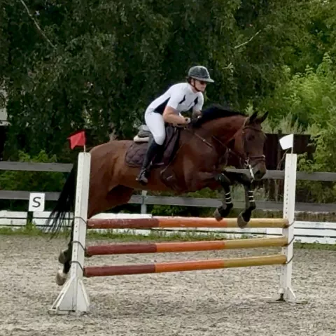 Легкий, очень простой в езде. На мягкой руке и ноге, управляется пальчиками. Стартовый опыт под любителем до 100см, дома 110-115. Всегда выручает, прыгает все конфигурации. Хорошо подъезжен(боковые, менка). Есть видео под ребенком, подойдет как учитель на прыжки. Продажа с лошадью не связана, нужна лошадь уровня повыше. По здоровью проблем нет, любые проверки. Находится в тренинге, выезжает на соревнования. Все вопросы на WhatsApp 89190097362