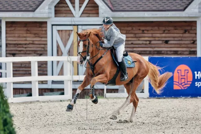 🍁 Голштинской породы. Конкур до 120 (дома до 130), одиночные выше. Розовый паспорт, внук Cor de la Bryer. Работает под КМС.