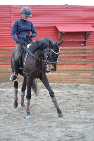 Кастрировать не нужно, хорошо работает в манеже со всеми, не жеребцует.