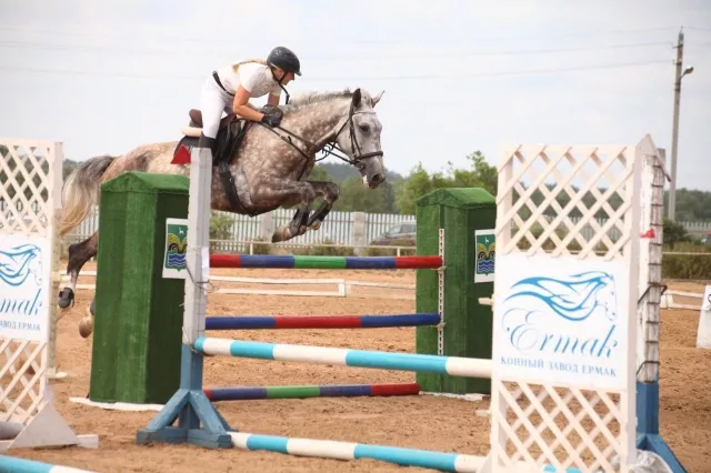 Прыгает маршруты до 120, одиночные до 140, шпринт до 160. Подойдет под сидящего всадника. Сильная, мощная, смелая. Не боится абсолютно ничего (заложений, канав, стенок). Выпрыгивает и выручает из любых положений. Работает на всех площадках без проблем, стартует с колес. Все манипуляции без проблем.