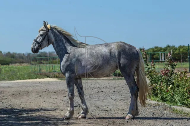 №467 — Кобыла, 2023 г.р., 166 в/х, серой масти, шайрской породы.