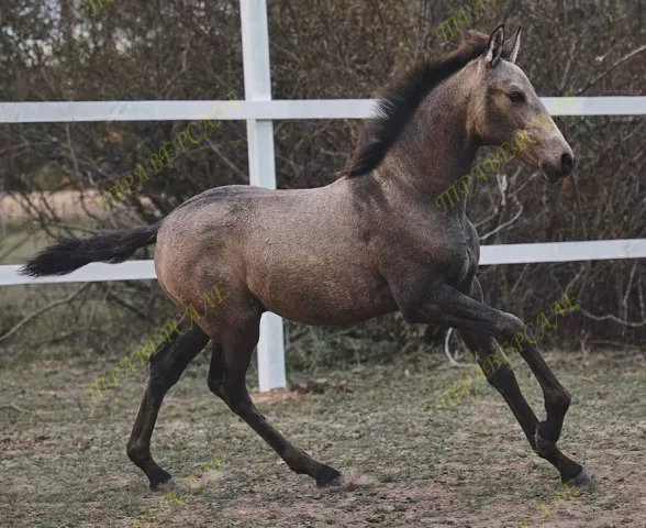 Испанский (андалузский) Pura Raza Espanola темно-буланый (с зональным потемнением, редкой масти) жеребчик от пары с топовой родословной: