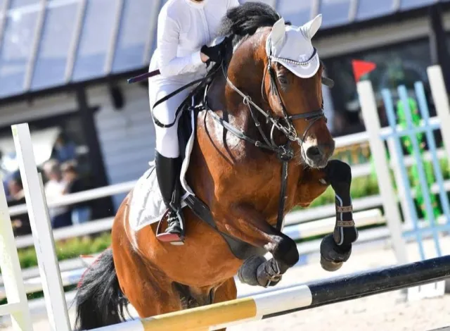 Выступал маршруты на соревнованиях до 105см, дома до 115см, одиночные до 125см. Сильный, смелый, прыгает любые барьеры.