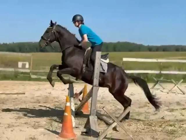 Пробовали прыгнуть, на барьер идет хорошо, не обносит, мягко прыгает.