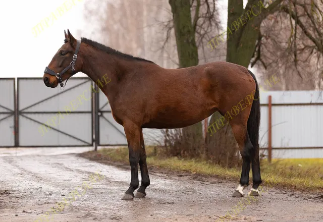 Очень хорошо отзывается на давление. Оповожена, гимнастируется на корде согласно возрасту, начинает напрыгивание на свободе. Показывает ровные продуктивные аллюры.