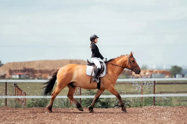 Стартовый опыт по детским ездам и кавалетти. Знает боковые, дома прыгает до 70 см. Подойдет под любого всадника, в том числе новичка или ребенка. Очень удобный под седлом, настоящий диван. Бронебойная психика, ничего не боится. Все бытовые манипуляции без проблем.