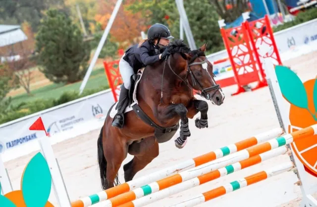 Находится в регулярном конкурном тренинге, имеет техничный прыжок и хорошие аллюры. Стартовый опыт по маршрутам до 110, дома маршруты до 120, в связках и гимнастике выше. Добронравный, контактный, легко и с интересом обучается.