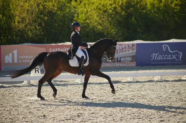 Выступает по Малому и Среднему призу, готовится к Большому, привез всаднику КМС. Работает на любых площадках, с любыми лошадьми как на уздечке, так и на оголовье. Отлично слышит и слушает всадника. Хорошо сложен, прекрасно гнëтся. Шаг с заступом, темпичная рысь, галоп в горку. Обладает природной каденцией. Эффектный, нравится судьям.